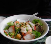 My favorite noodle dish here is Egg Noodle Dry Style (pictured above). It reminds me so much of my hometown cookery of Mee Hang. Tiu said a family ancestor was originally from China and found a new home in Vietnam. Her family is Vietnamese but the restaurant features mainly Chinese noodle soups, recipes that have been passed on in families for generations. Perhaps now I could make a connection; Chinese descendants my hometown also came from the same part of China. When I eat her egg noodle dry style it feels like being in Phuket. Most of all, I am thankful to her for preserving the authenticity of the dish.
